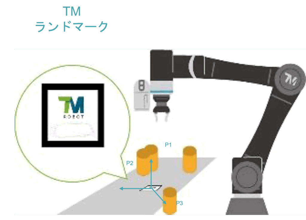 さらに注目すべきは、位置決めを自動化する「TM Landmark」機能です。これは、ロボットのカメラが専用のランドマーク(目印)を認識し、自身の位置を自動補正する仕組みです。