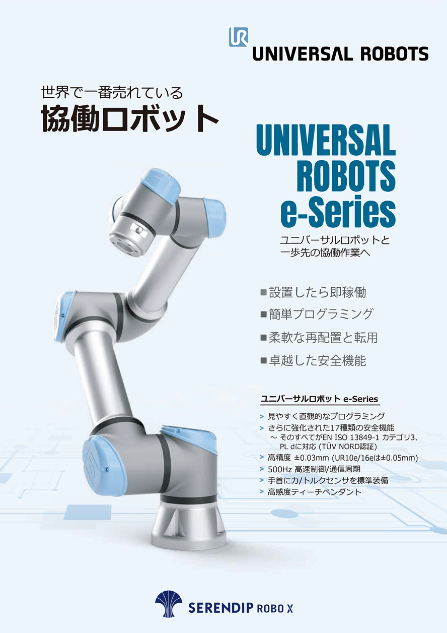 世界で一番売れている協働口ボット「ユニバーサルロボット e-Series」の各製品の特徴やスペックを一目で比較できる資料です。